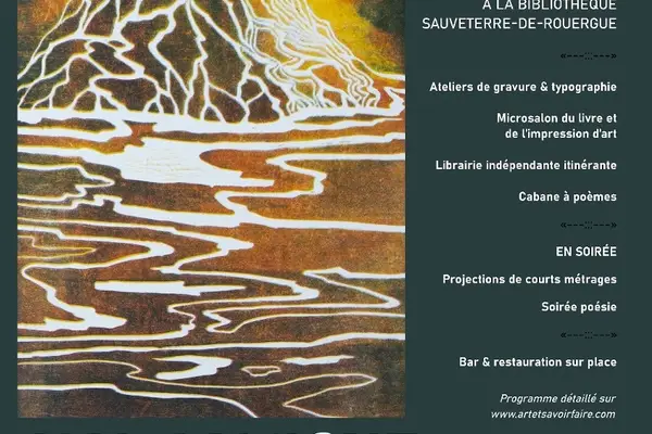 Dans le cadre du Printemps des Poètes, Sauveterre-de-Rouergue organise une fête du livre, de l'imprimerie, du court-métrage et des volcans !