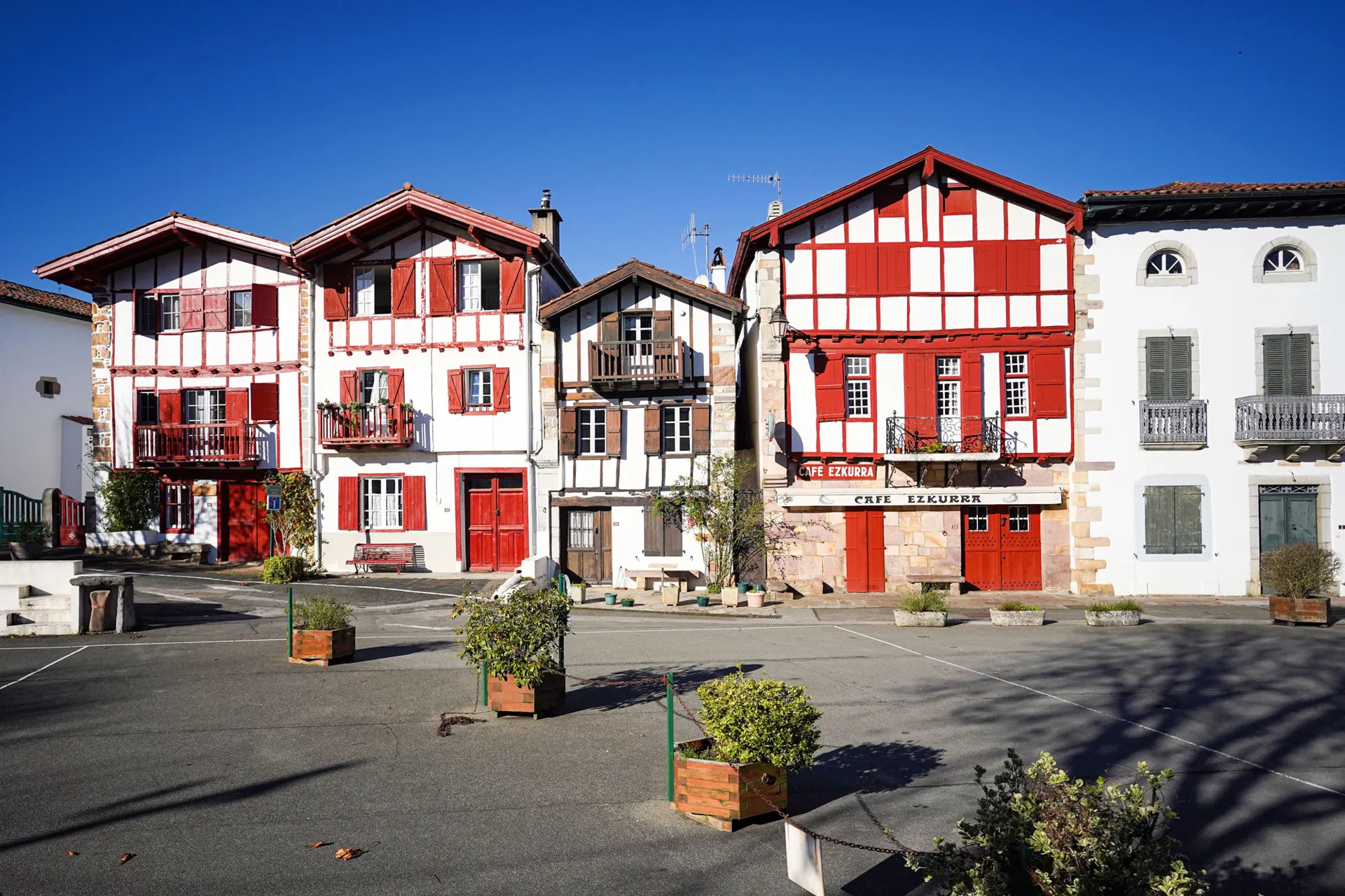 Une bastide en Pays basque, sur les chemins de Saint-Jacques de Compostelle : c'est Ainhoa. A la limite de la province du Labourd et de la Navarre, à quelques kilomètres d'Espelette et de Sare, le village arbore, le long de sa rue unique, les façades aux couleurs blanches et rouges de ses maisons typiques.