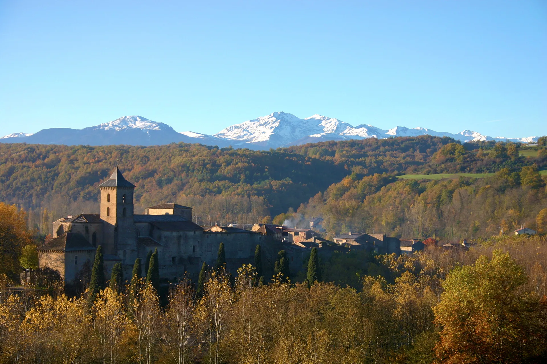 C'est au creux d'un vallon ariégeois, dans une boucle de la rivière Hers que Camon est né, de la création d'une abbaye au Xème siècle qui deviendra plus tard un prieuré fortifié. C‘est par l'ancienne porte voûtée de l'église que l'on pénètre aujourd'hui dans le village pour découvrir ces témoins du passé religieux de Camon et ses maisons aux tuiles romanes.
