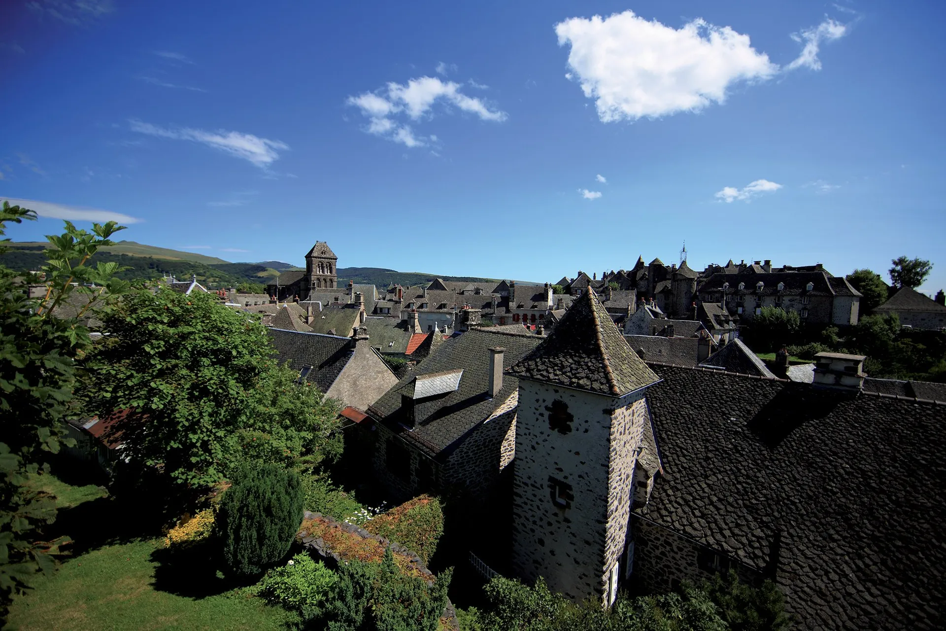 Né à l’époque féodale, Salers s’est développé derrière ses remparts à partir du XVème siècle. Mais c’est au XVIème siècle que le village prend une dimension plus importante, en devenant, sur ordre d’Henri II, le siège du Bailliage des Hautes Montagnes d’Auvergne. Ce tribunal royal apporte une notoriété et un développement incontestables et, avec eux, la naissance du cœur historique de Salers. Autour de la place Tyssandier-d’Escous se dressent de magnifiques demeures édifiées par les riches familles de bourgeois et de magistrats, fièrement parées de blasons, toits en poivrière, linteaux sculptés et fenêtres à meneaux. L’église Saint-Mathieu, au porche originel du XIIème siècle et maintes fois remaniée, témoigne de la double influence historique médiévale et Renaissance. Tout de pierre volcanique et de toits de lauze vêtu, le village de Salers offre au regard une unité architecturale à la beauté minérale qui n’est pas étrangère à son classement parmi Les Plus Beaux Villages de France… C’est d’ailleurs à Salers que fut créée l’association éponyme en 1982 !