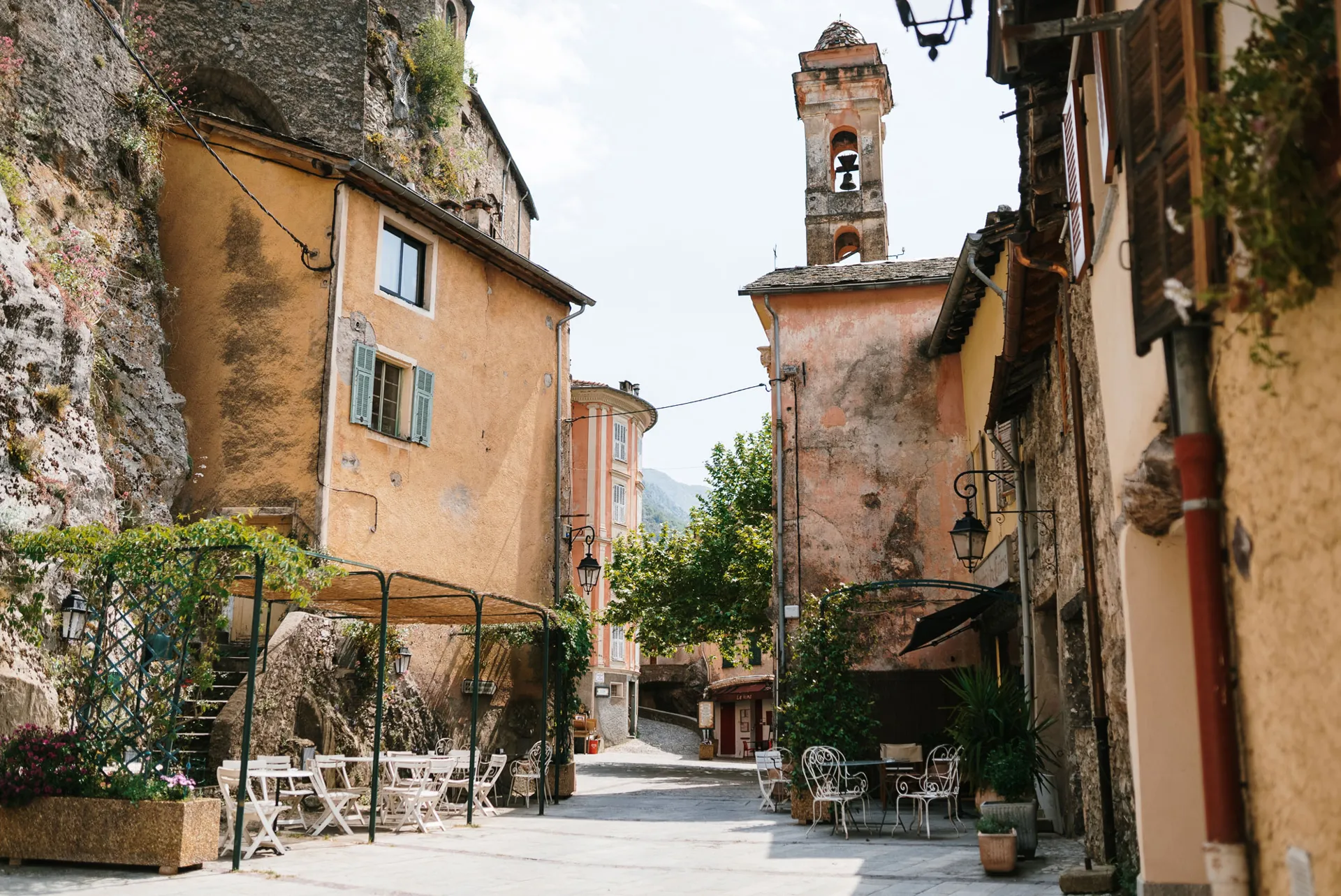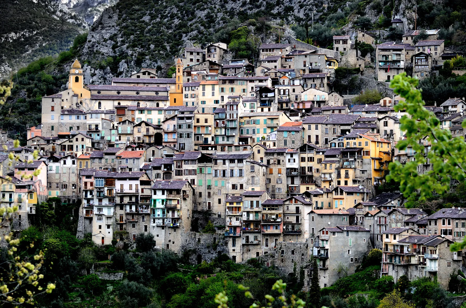 A 45 km au Nord de Menton et de la Riviera, Saorge déploie ses hautes façades colorées et son riche patrimoine religieux d’influence italienne au-dessus des gorges de la Roya.